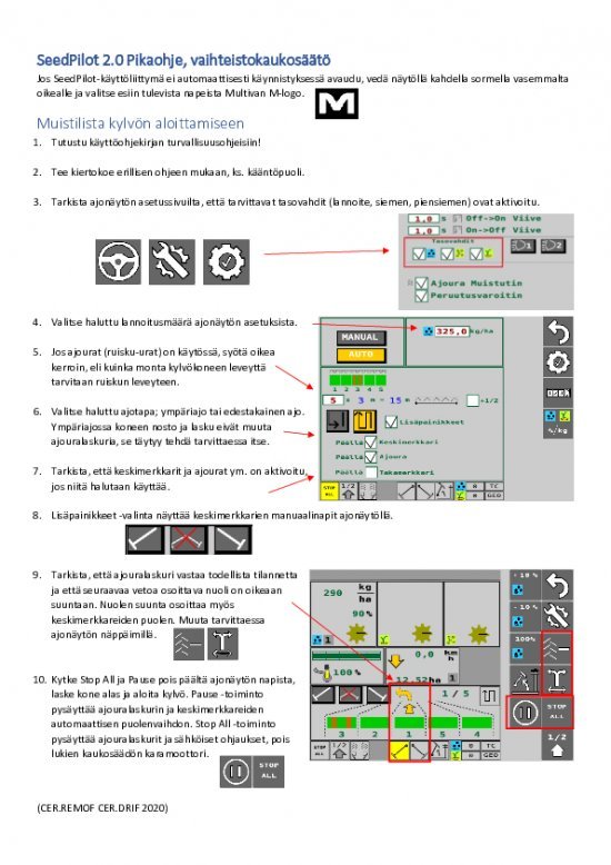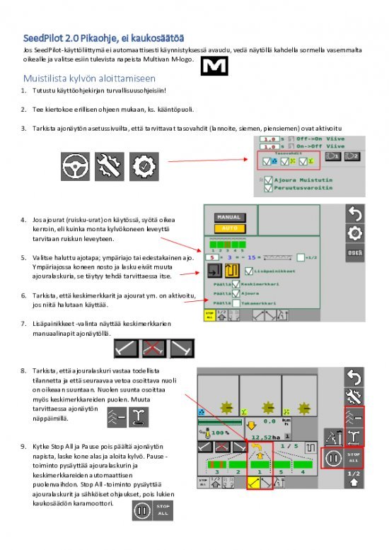 SeedPilot 2.0 pikaohje ei kaukosäätöä
