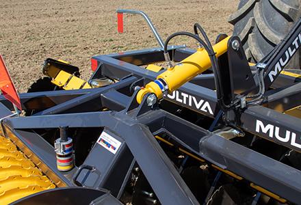 Kaikkien Multiva lautasmuokkaimien työsyvyys säädetään helposti ja varmatoimisesti muuttamalla työsyvyyssylinterien säätöpalojen paksuutta ja määrää.