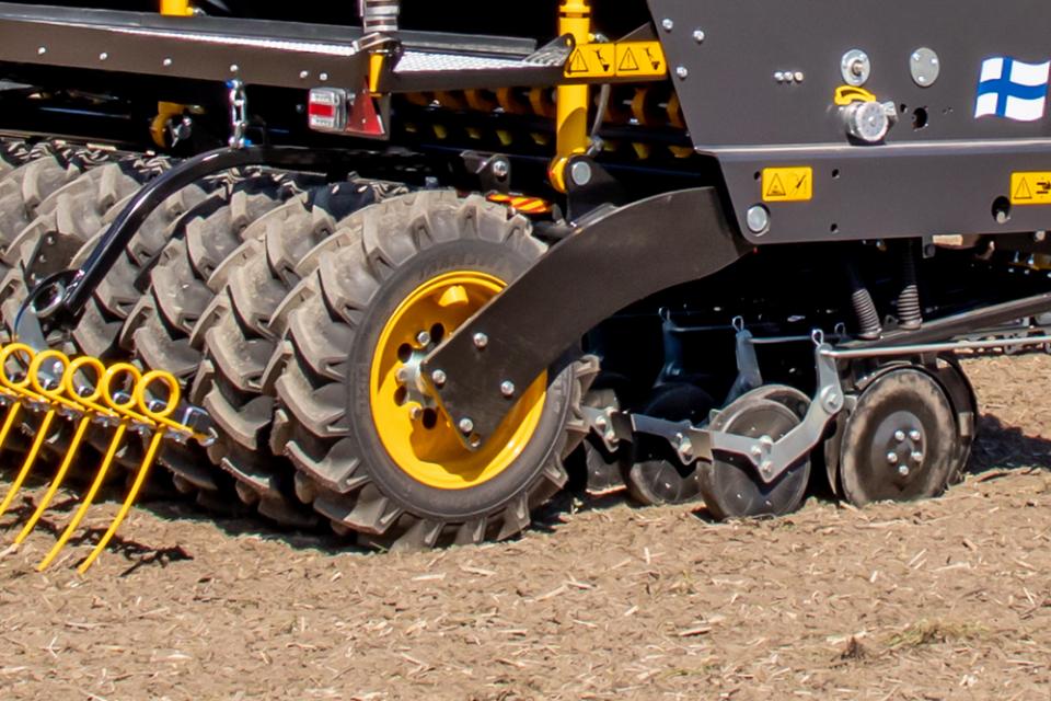 A dupla nyitótárcsák a talajban egyenesen futnak, így hatékonyan nyitják meg a magárkot, a műtrágya pedig ugyanazon a csoroszlyán keresztül kerül a talajba, így nincs szükség plusz tárcsákra. A nagy méretű szállító kerekek könnyen gördülnek lazább talajokon is, tovább csökkentve a lóerőigényt és optimalizálva az üzemanyagfelhasználást.