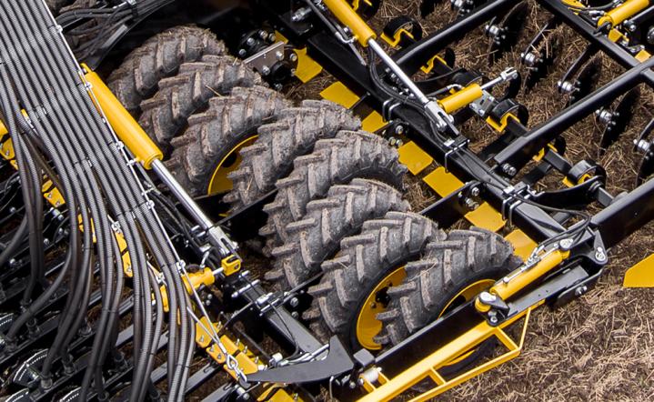 A nagyméretű tömörítő kerekek a lazább talajokon tömörítik a szántóföld felszínét, a keményebb talajtípusokon pedig megtörik a rögöket és kiegyenlítik a talajt. A tömörítő keréksor részben tehermentesíti az erőgépet munkavégzés közben.